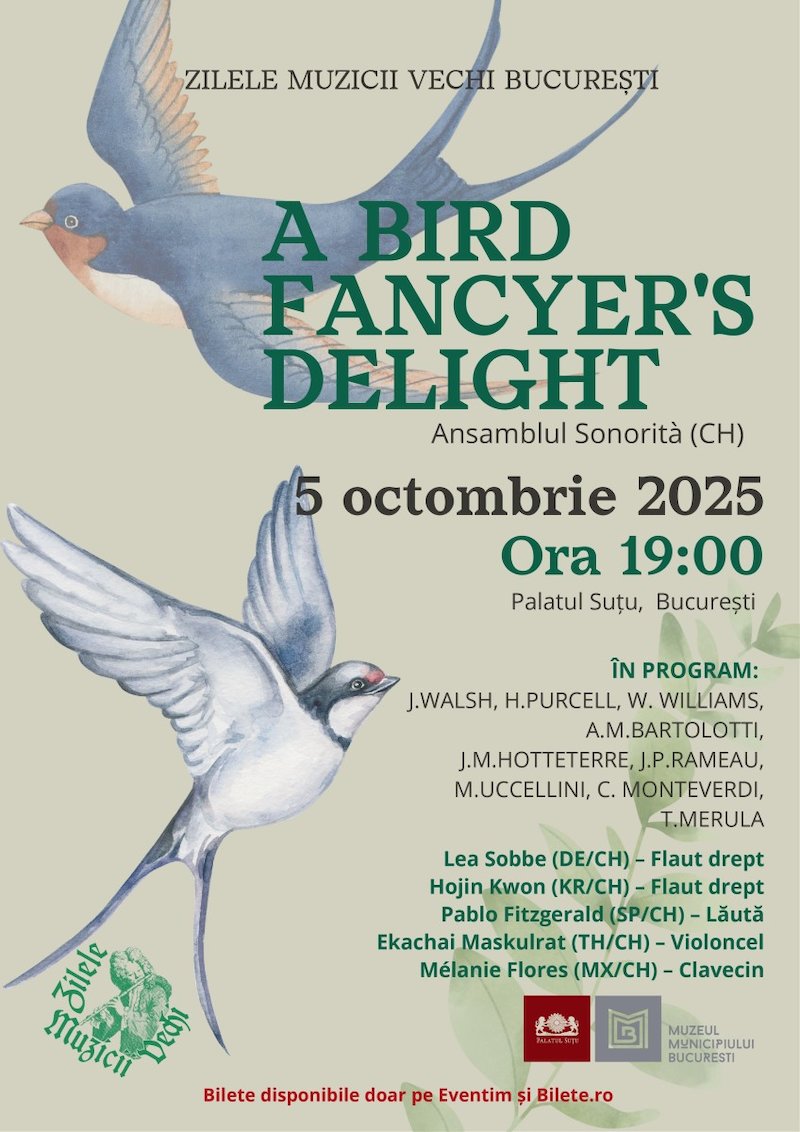 Ansamblul SONORITÀ prezintă ultimul concert din cadrul festivalului Zilele Muzicii Vechi București 2025, intitulat „A Bird Fancyer’s Delight”.