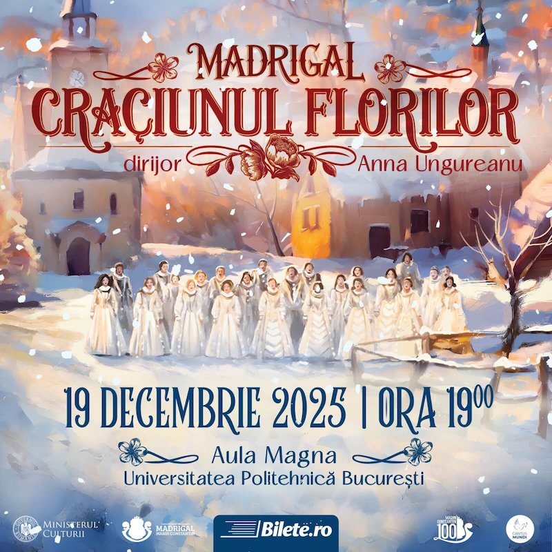 Corul Național de Cameră „Madrigal – Marin Constantin”, dirijat de Anna Ungureanu, aduce în luna decembrie mesajul său plin de pace și speranță și conectează spectatorii cu bucuria Crăciunului printr-un concert de colinde special.